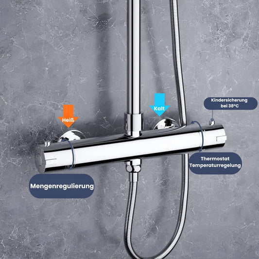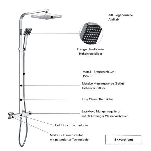 Designer Duschsäule Serie "Park" Höhenverstellbar mit Regendusche, Thermostat und Handbrause