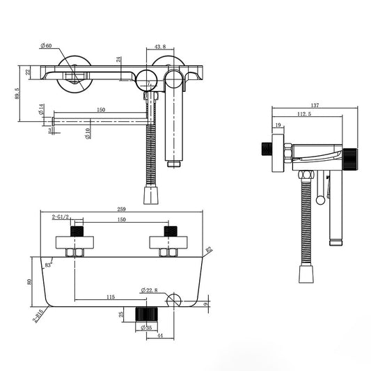 Design WC/Bidet Handbrause Komplettset mit Unterputz Mischer in Schwarz Matt