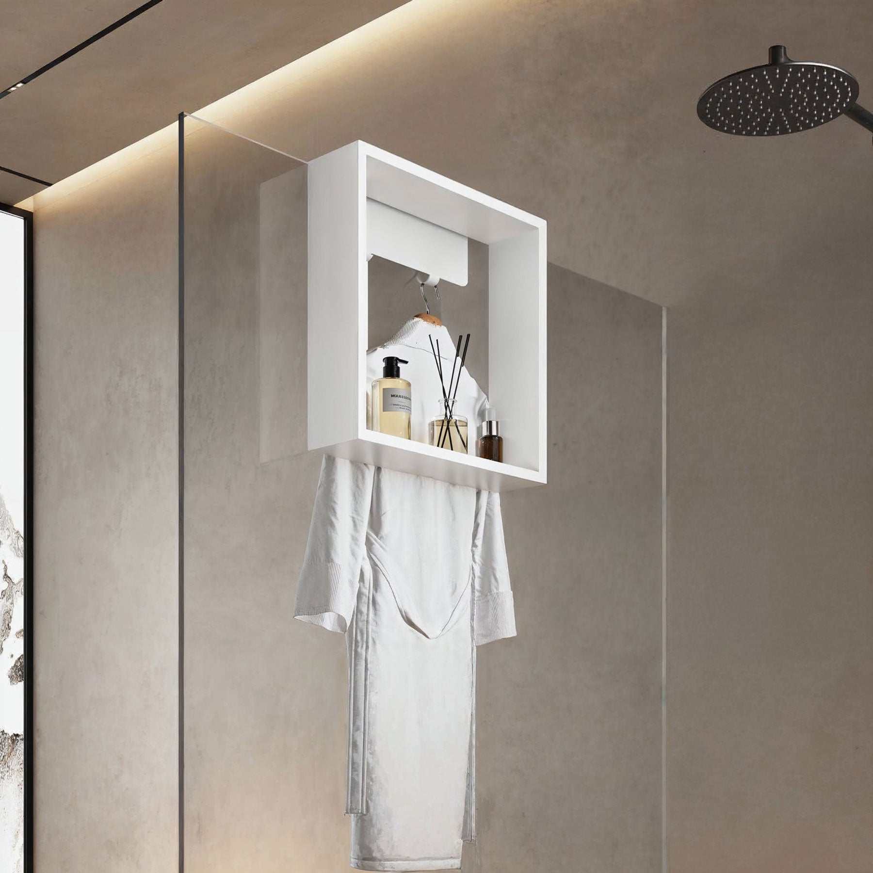 • Integrierte Wandhaken – ideal für Handtücher oder Bademäntel (2 Haken bei 40x40 cm / 4 Haken bei 60x40 cm)