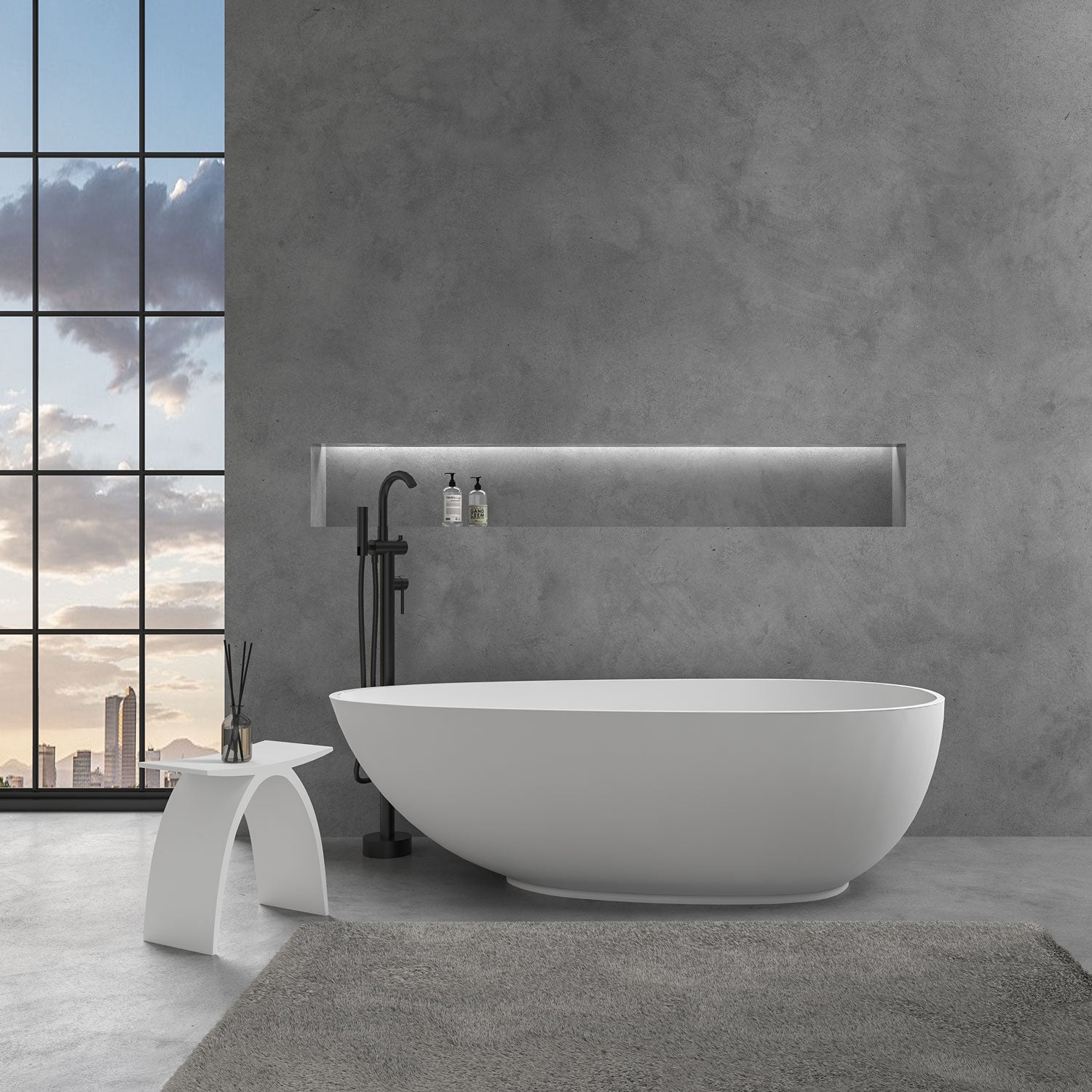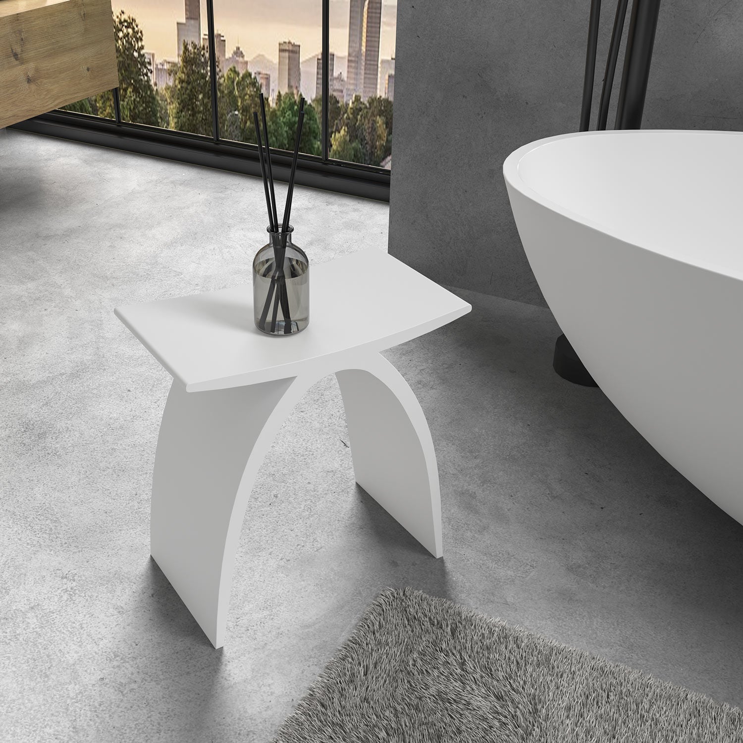 Badhocker MANHATTAN aus hochwertigem Mineralguss in Weiß Matt