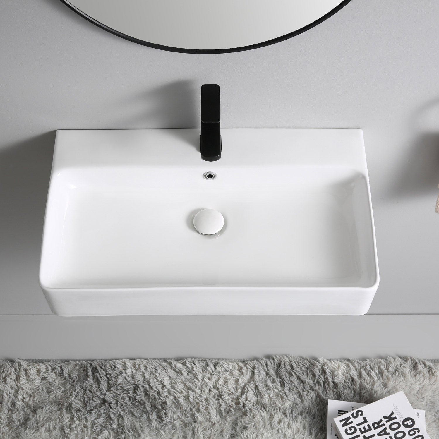 Berlin Waschbecken 70x42 aus feinster Keramik für Wandmontage oder als Aufsatzwaschbecken mit Hahnloch