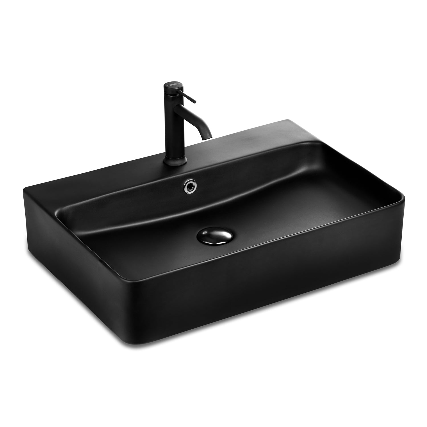 Berlin Waschbecken Schwarz Matt 60 x 42 aus feinster Keramik für Wandmontage oder als Aufsatzwaschbecken mit Hahnloch
