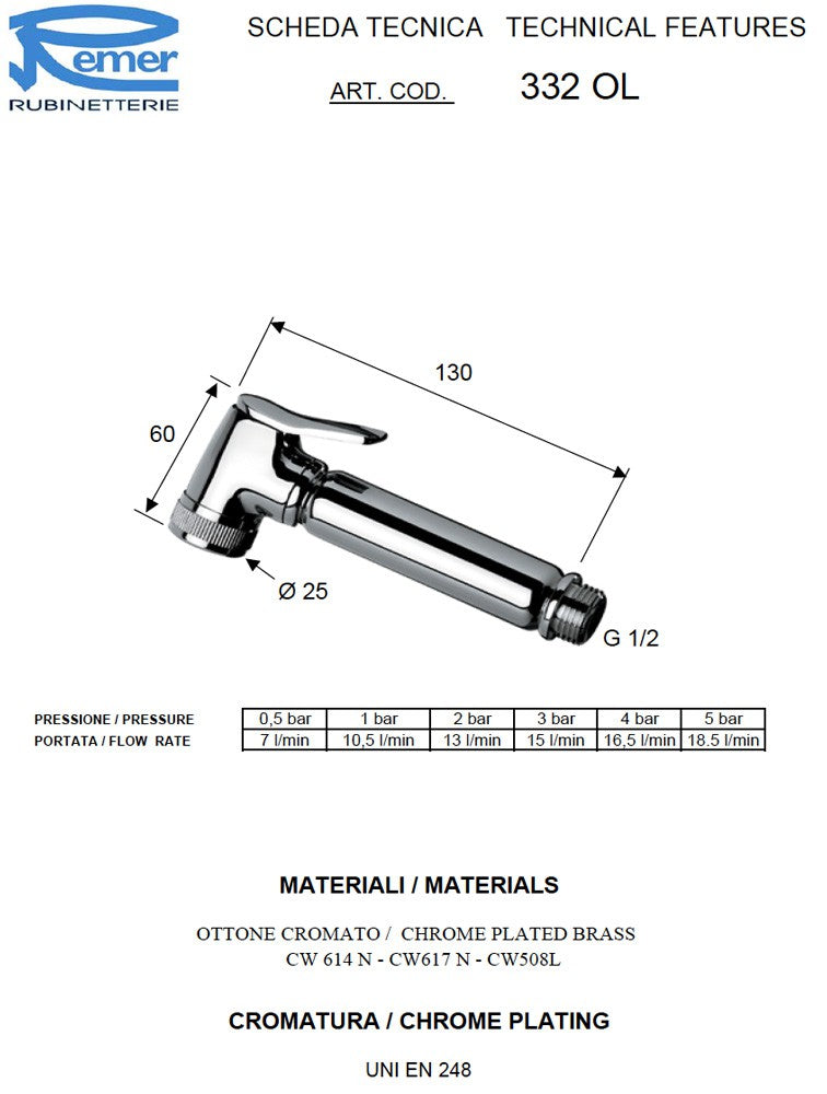 Hochwertige Design WC Handbrause aus massivem Messing (chrom)