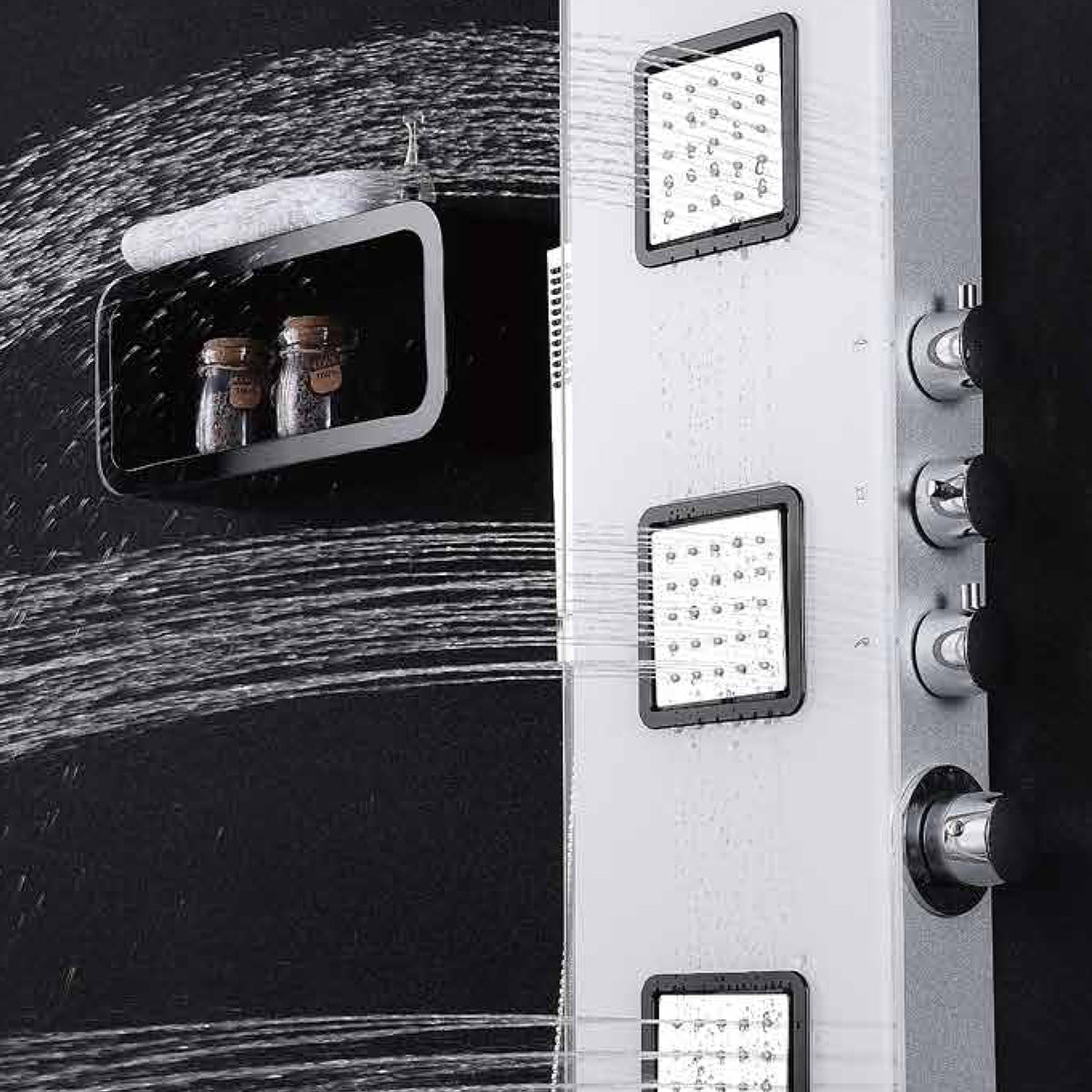 Duschpaneel aus Glas mit Thermostat in Weiss mit XXL Regendusche