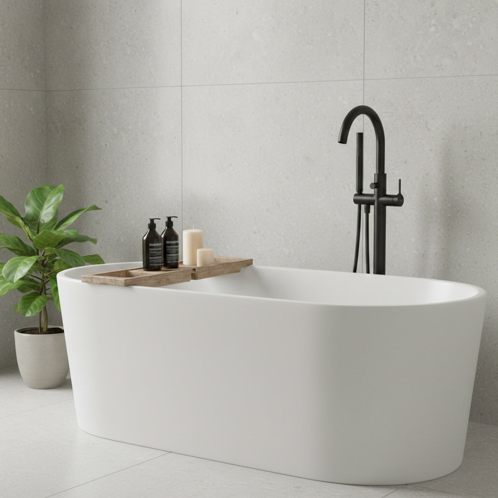 Die freistehende Wannenarmatur von Stilform vereint eine skulpturale Ästhetik mit solider Bauweise und ist die ideale Ergänzung für jede freistehende Badewanne. Der Armaturenkörper besteht aus einem massiven Messingkern, der für die nötige Schwere und Standfestigkeit sorgt, während die hochglänzende Schwarz Matt-Oberfläche dem Badezimmer eine zeitlose Eleganz verleiht.