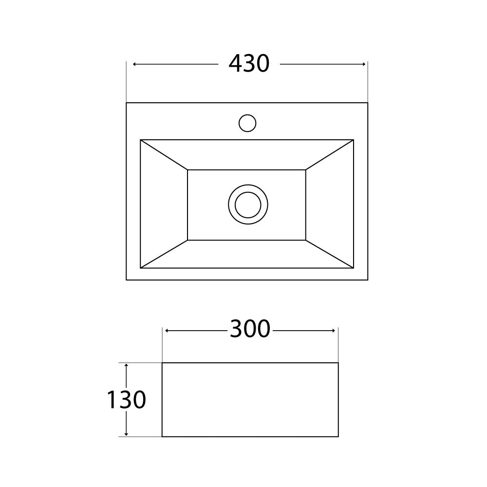- Modell: Wand- oder Aufsatzwaschbecken mit Hahnloch