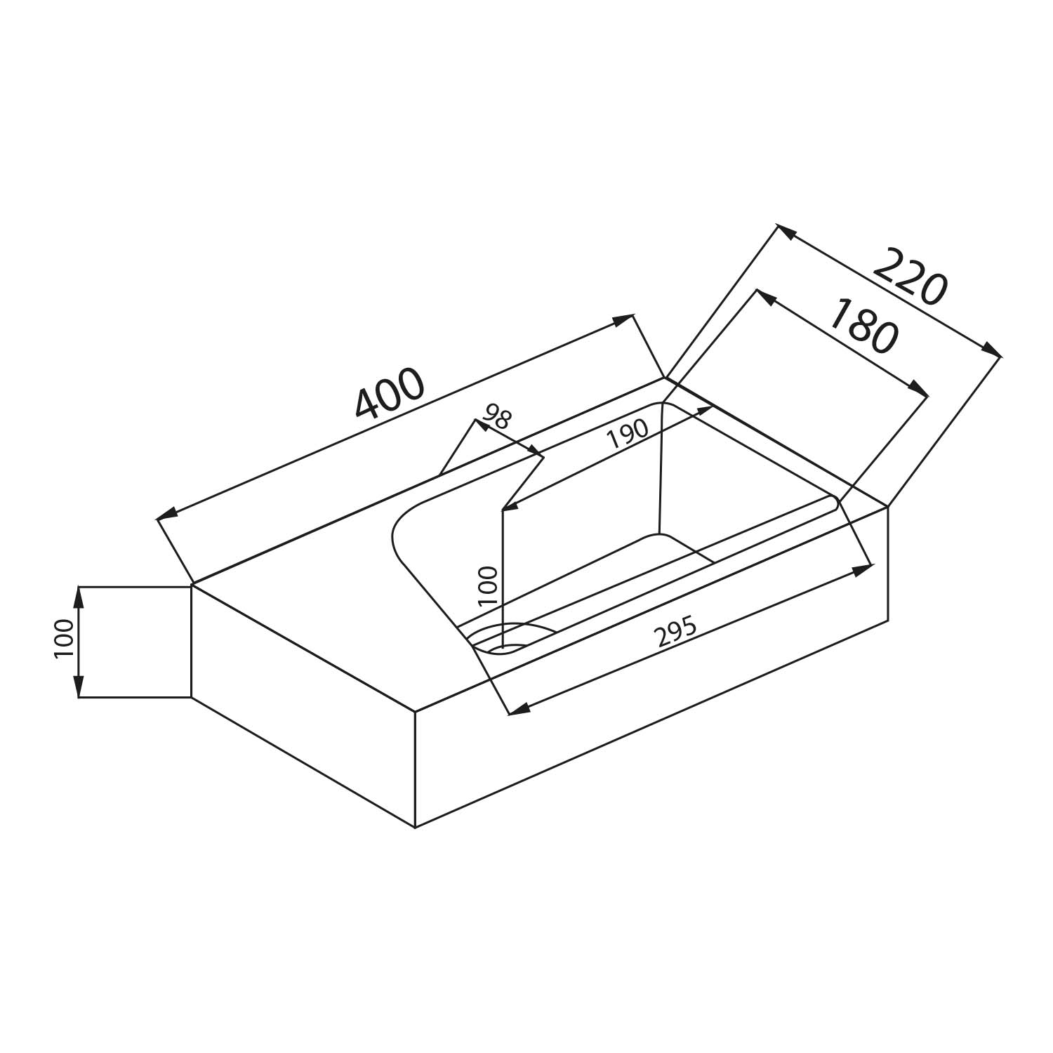 Das Gäste WC Waschbecken ist 40 cm breit, 22 cm tief und 13,5 cm hoch. Im Lieferumfang ist nur das Mineralgusswaschbecken enthalten. Die Waschtischarmatur, das Popup-Ventil und das Befestigungsmaterial sind optional zu wählen.
