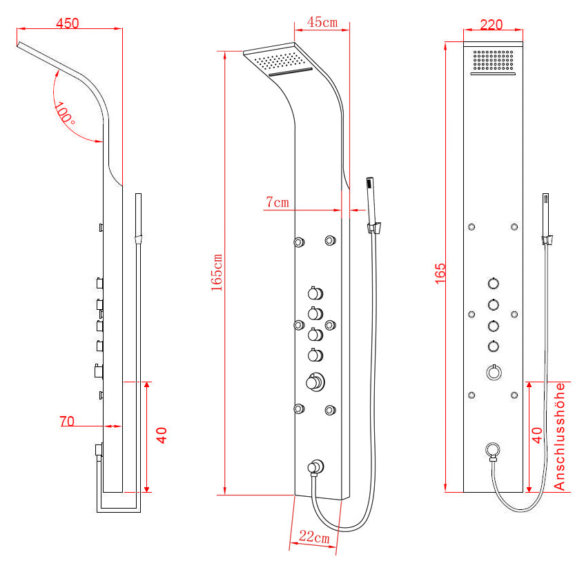 Dieses Luxuriöse Duschpaneel mit 6 voll beweglichen Hydro Massagejets (Hochleistungsjets), sorgt garantiert für ein atemberaubendes Duscherlebnis.