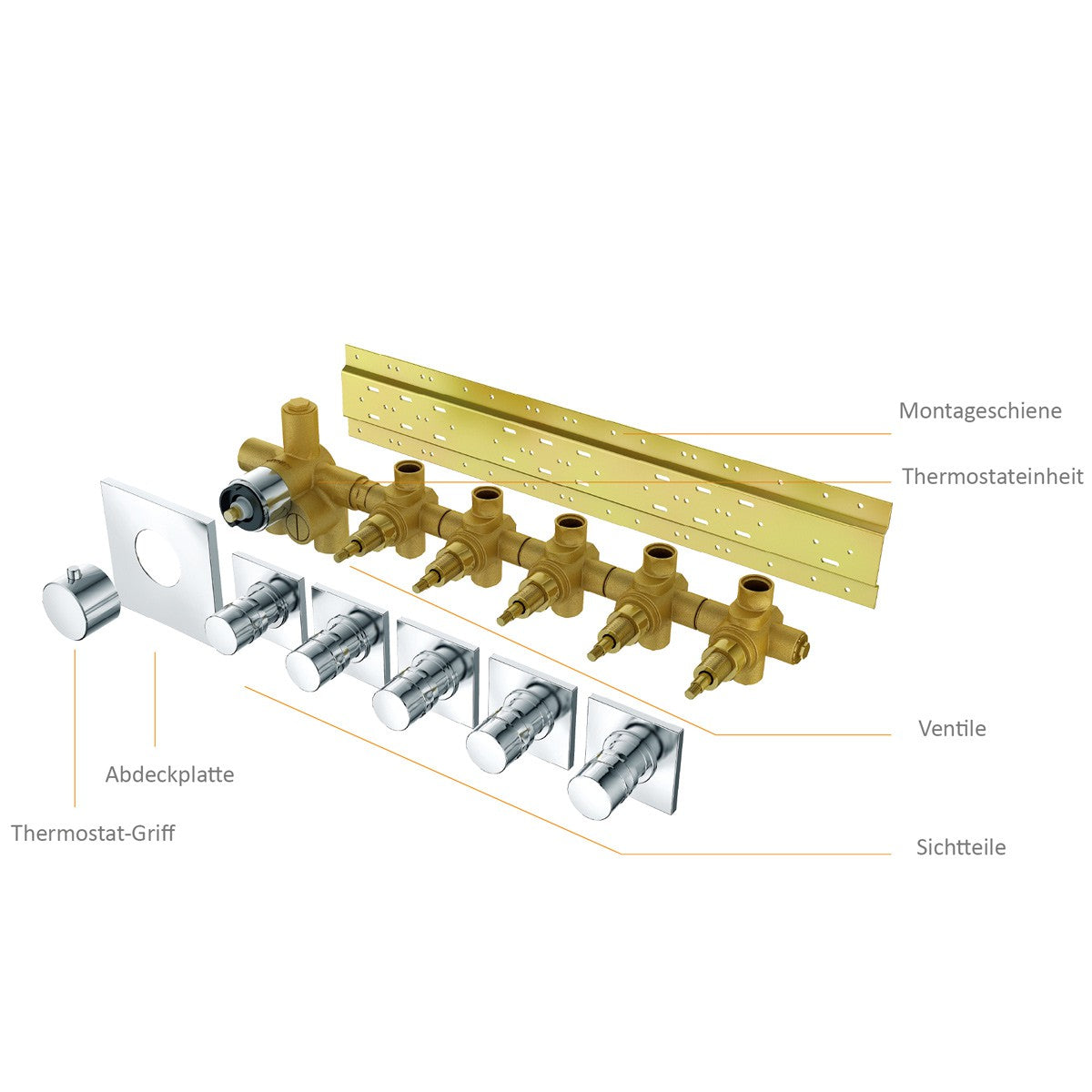 Diese Thermostatarmatur eignet sich für Duschsysteme mit 5 Funktionen (zb. Regendusche 1, Regendusche 2, Wasserfall, Sprühnebel und Handbrause).