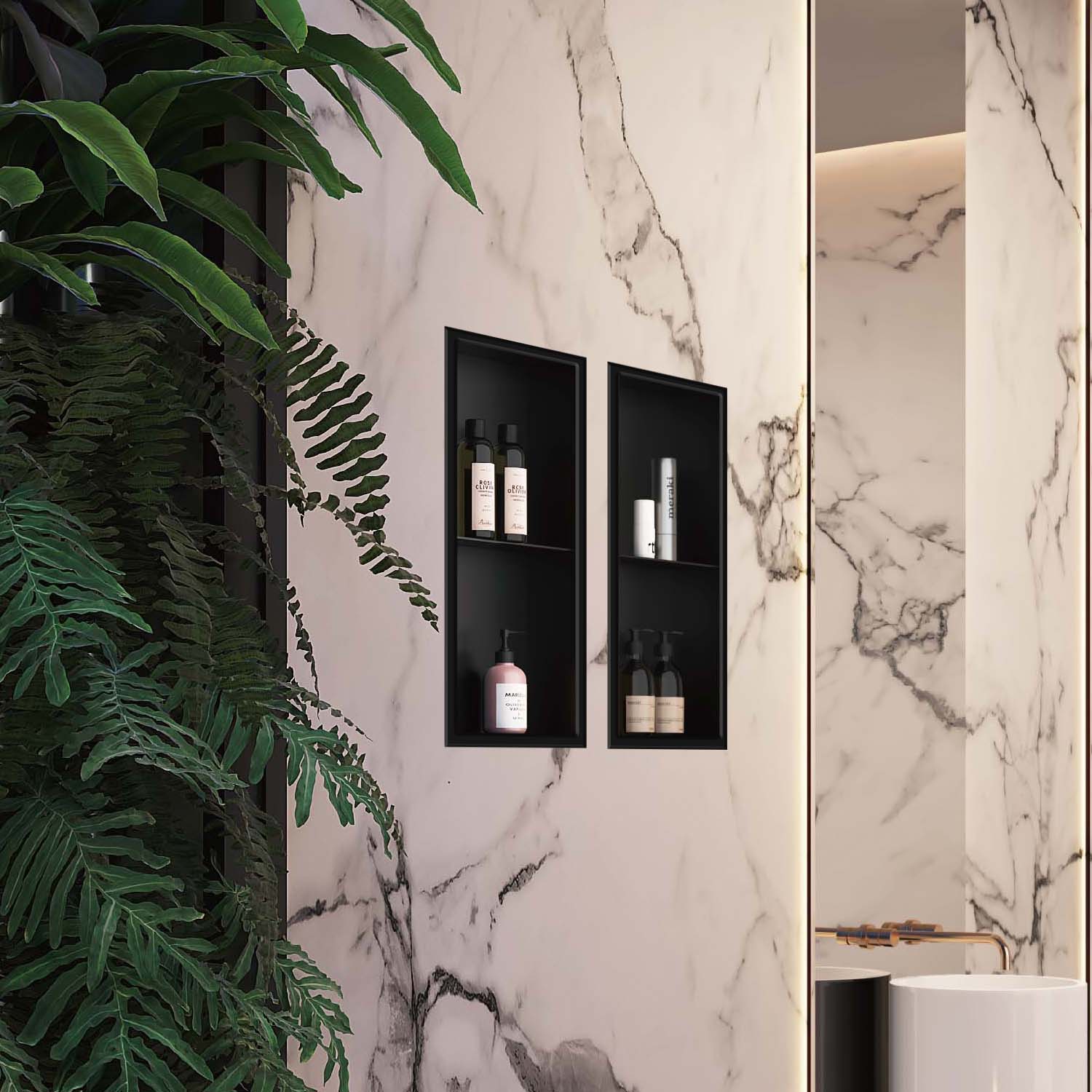 Diese Nische fungiert nicht nur als praktische Ablagefläche sondern auch als Blickfang in Ihrem Badezimmer.