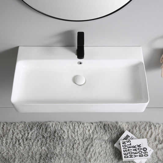 Berlin Waschbecken 80 cm aus feinster Keramik für Wandmontage oder als Aufsatzwaschbecken mit Hahnloch